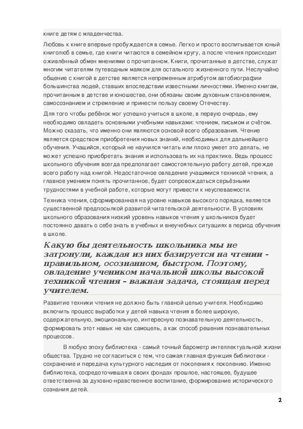 Развитие техники чтения не должно быть главной целью учителя. Необходимо