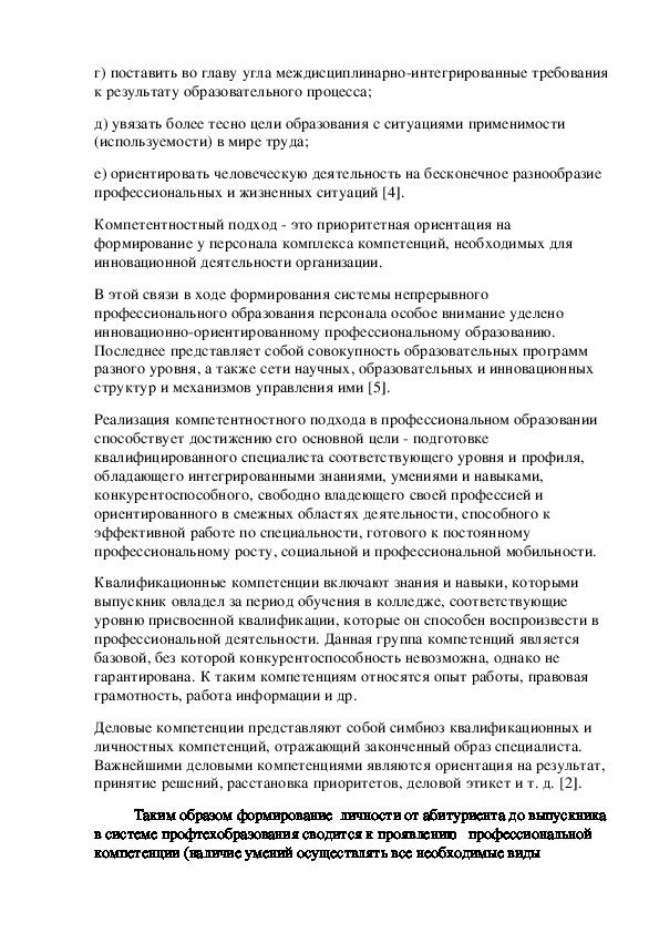 4. Троицкая И. И. Компетентностный подход в профессиональной