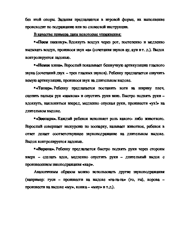 предлагаемых заданий. Тренировка речевого выдоха осуществляется на
