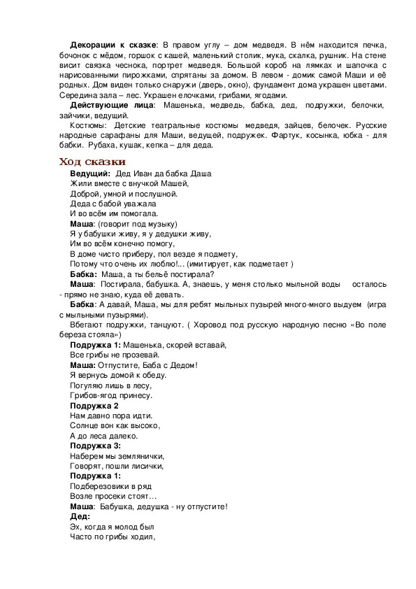 Ведущая: И пошли они все вместе по дорожке к домику, где жил дед да баба.