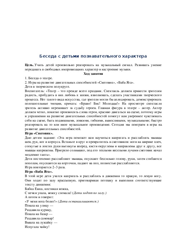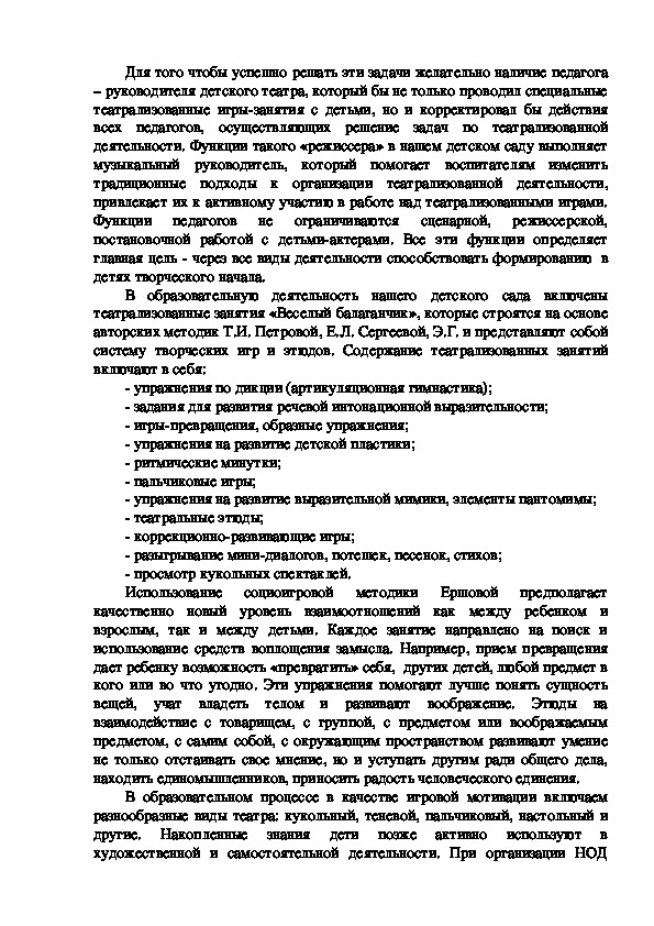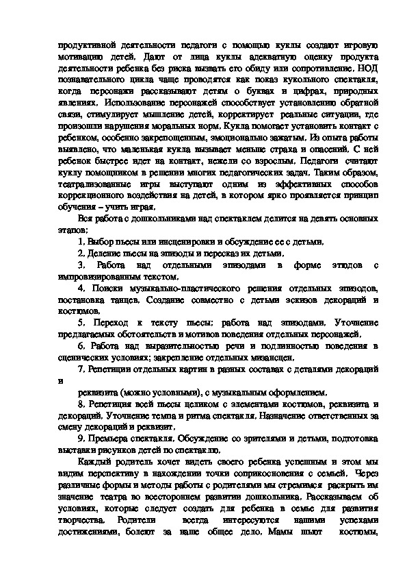 театрализованные игрызанятия с детьми, но и корректировал бы действия