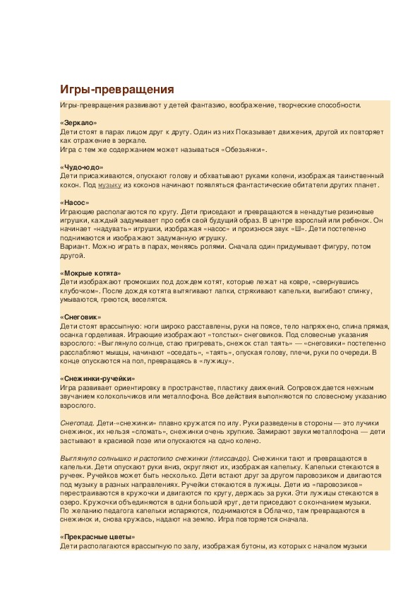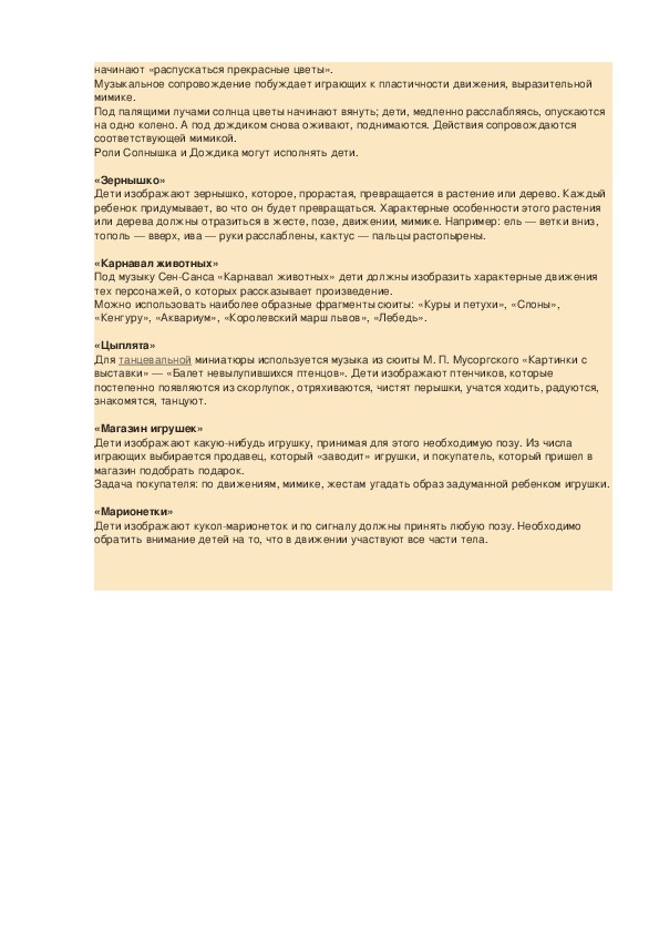 или дерева должны отразиться в жесте, позе, движении, мимике. Например: ель — ветки вниз,