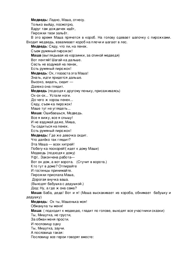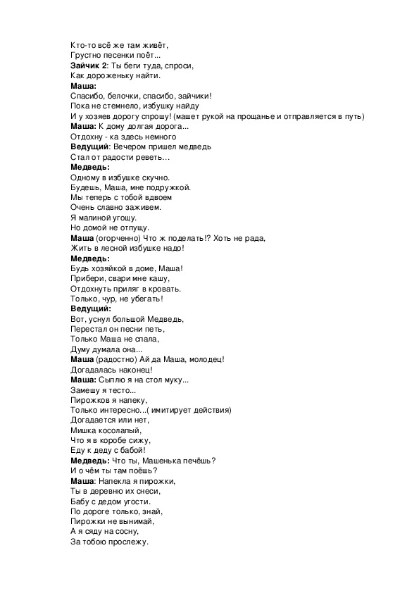 Ведущая: И покатился колобок дальше: медведь только в след ему и посмотрел.