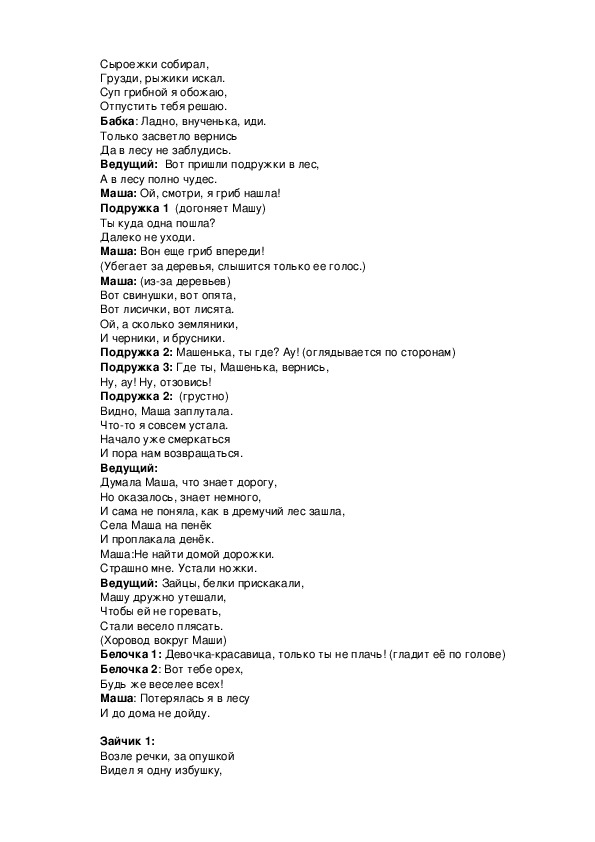 (Взялись все за руки, идут по дорожке)Ведущая: И пошли они все вместе по лесу к дальше. Видят зайчик стоит, весь дрожит от