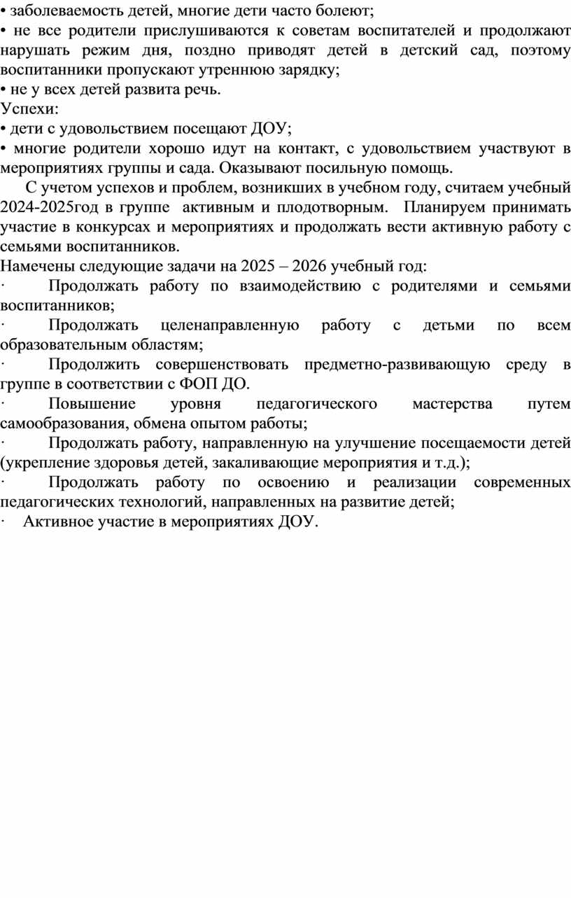 С учетом успехов и проблем, возникших в учебном году, считаем учебный 2024-2025год в группе активным и плодотворным. Планируем принимать участие в конкурсах и мероприятиях и продолжать вести активную работу с семьями воспитанников.