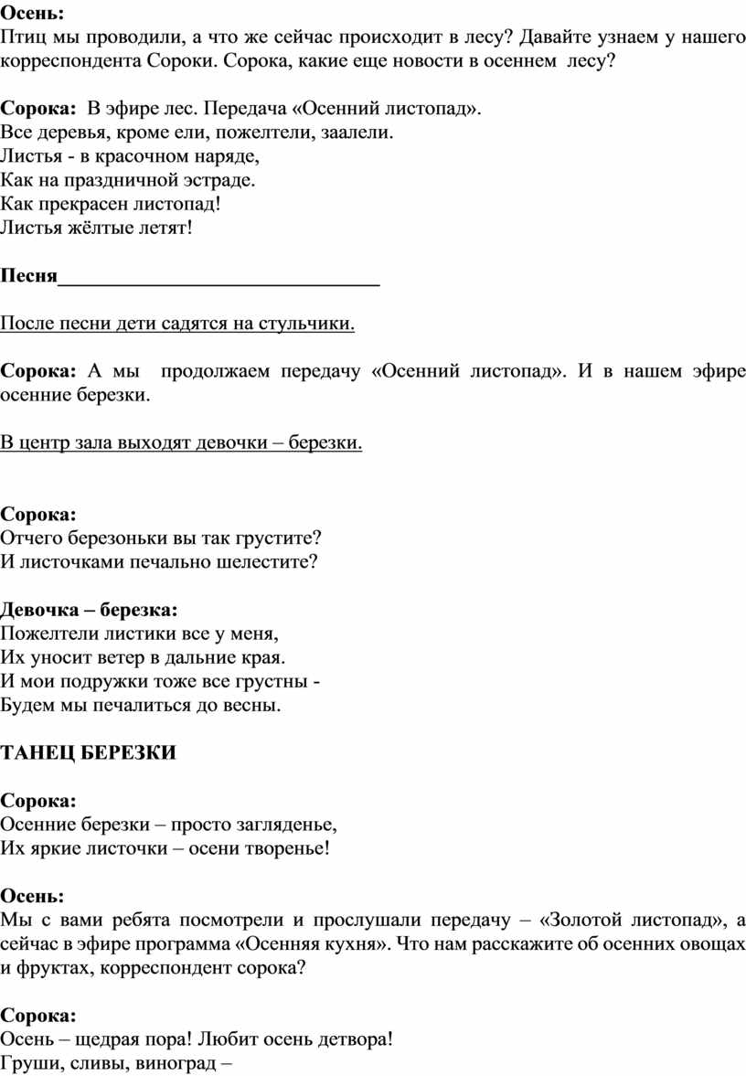 Сорока: А мы продолжаем передачу «Осенний листопад». И в нашем эфире осенние березки.