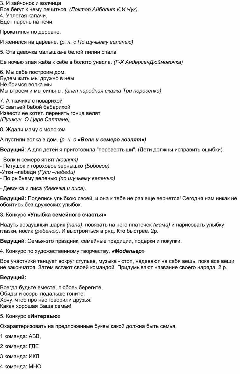 Ведущий: Дом построили, а теперь отдохнем и проверим, как вы внимательно читаете детям сказки. Этот конкурс только для родителей. (Дети болеют за родителей)