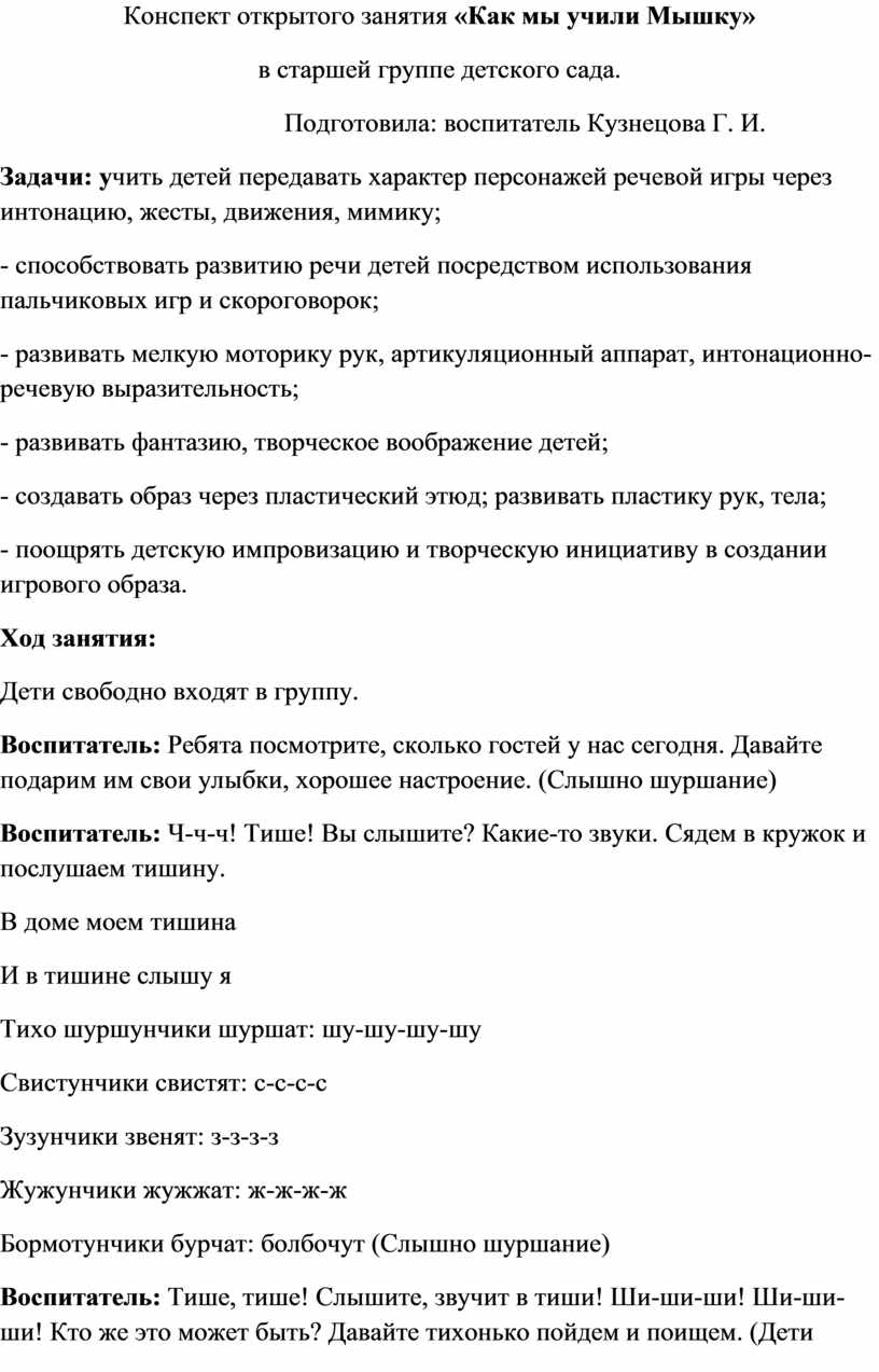 Воспитатель: Ну что ж, молодцы, справились с заданием. А хочешь, Мышка поиграть с нами в интересную игру.