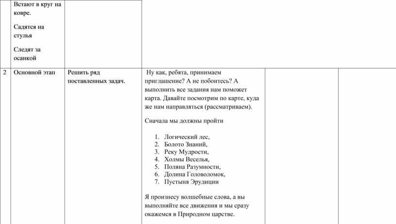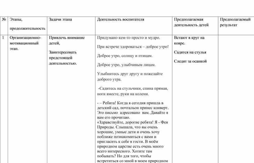 Придумано кем-то просто и мудро. При встрече здороваться – доброе утро! Доброе утро, солнцу и птицам. Доброе утро, улыбчивым лицам. Улыбнитесь друг другу и пожелайте доброго утра. -Садитесь на стульчики, спина прямая, ноги вместе, руки на колени. - – Ребята! Когда я сегодня пришла в детский сад, почтальон принес конверт. Это письмо адресовано вам. Давайте я вам его прочитаю. «Здравствуйте, дорогие ребята! Я - Фея Природы. Слышала, что вы очень хорошие, умные дети и очень хочу поближе познакомиться с вами и пригласить к себе в гости. В моём природном царстве есть очень много всего интересного. Хотите там побывать? Но для того, чтобы встретиться со мной в моем природном царстве, нужно пройти испытания. Вы должны собрать волшебный цветок - Цветик-Семицветик. Я отправляю Вам карту с заданиями, выполнив которые Вы найдете все лепестки по очереди. Фея Природы»