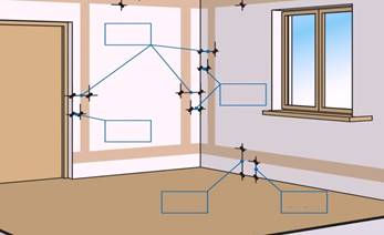 · прокладка проводки внутри или снаружи стен выполняется только по вертикали или горизонтали, а место прокладки отображается на плане проводки;