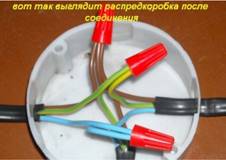 Рядом с соединением проводов монтируется специальные коробки. В них маскируются все скрутки проводов. Они должны располагаться вровень поверхности стены (заподлицо с ней). Изготавливают их из полимеров или стали. Разветвленные коробки закрываются в целях безопасности пластмассовыми крышками. Также это необходимо ещё и для эстетического аспекта. Поэтому часто эти крышки имеют интересный дизайн.