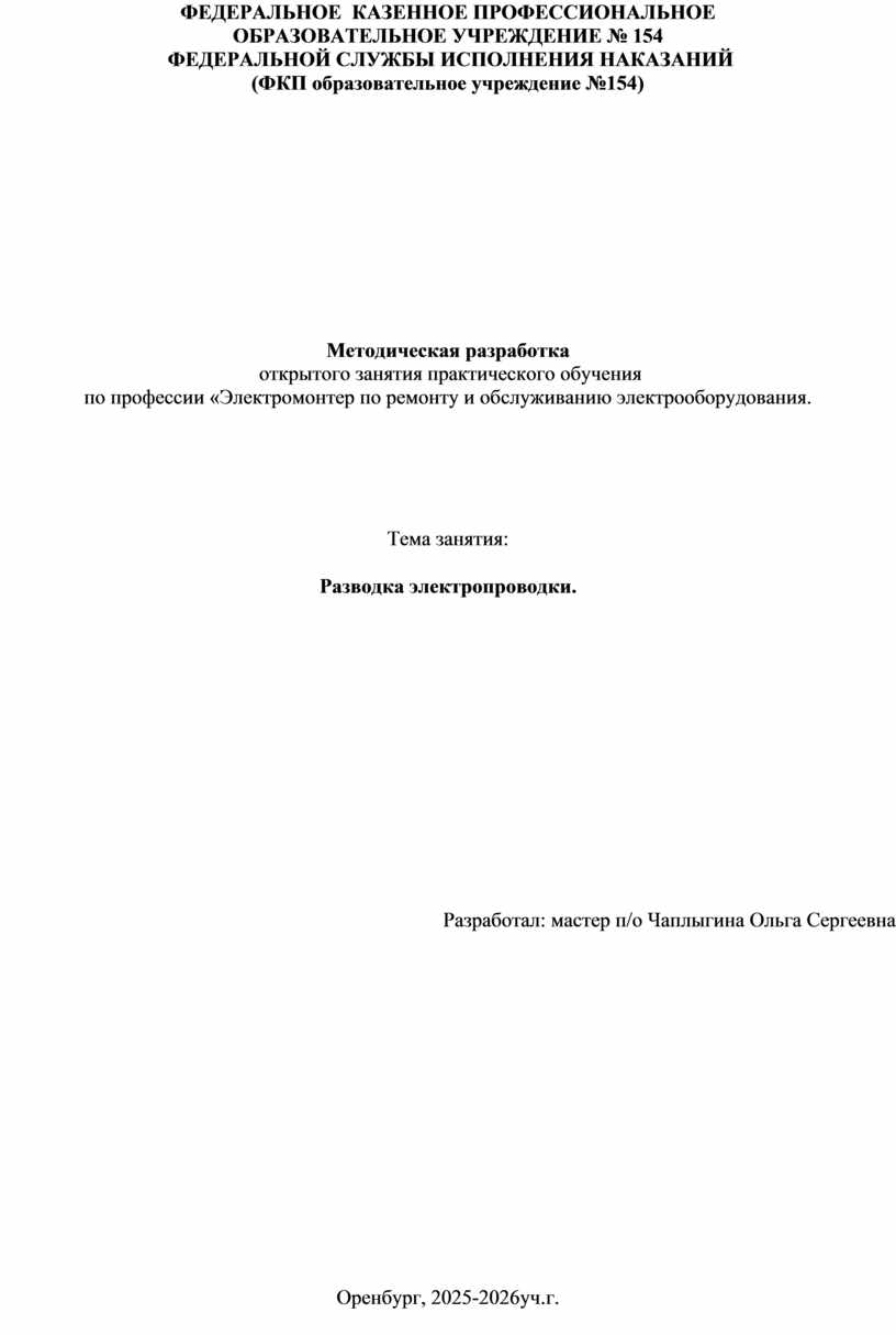 Разработал: мастер п/о Чаплыгина Ольга Сергеевна