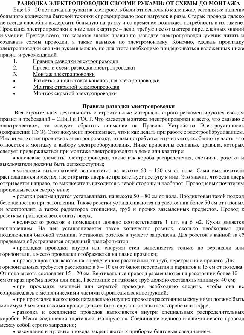 РАЗВОДКА ЭЛЕКТРОПРОВОДКИ СВОИМИ РУКАМИ: ОТ СХЕМЫ ДО МОНТАЖА
