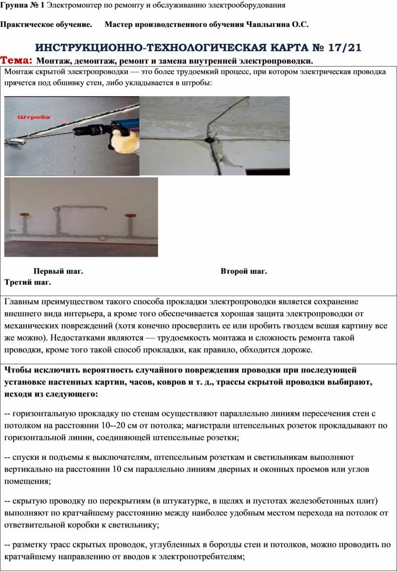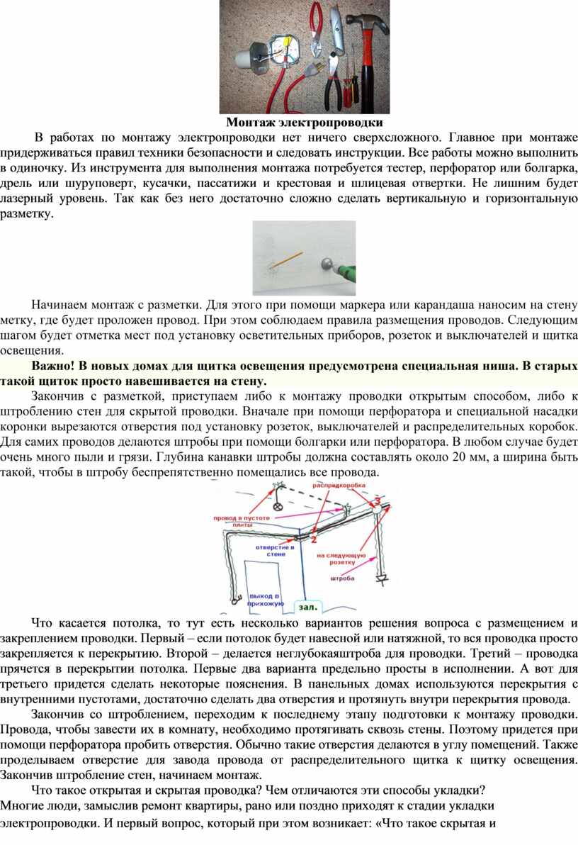 Тема: Монтаж, демонтаж, ремонт и замена внутренней электропроводки.