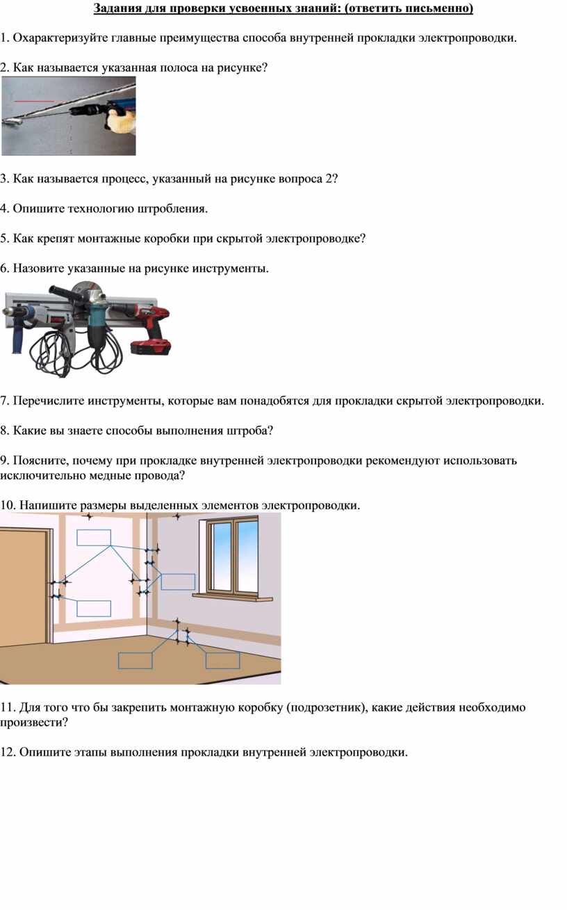 12. Опишите этапы выполнения прокладки внутренней электропроводки.