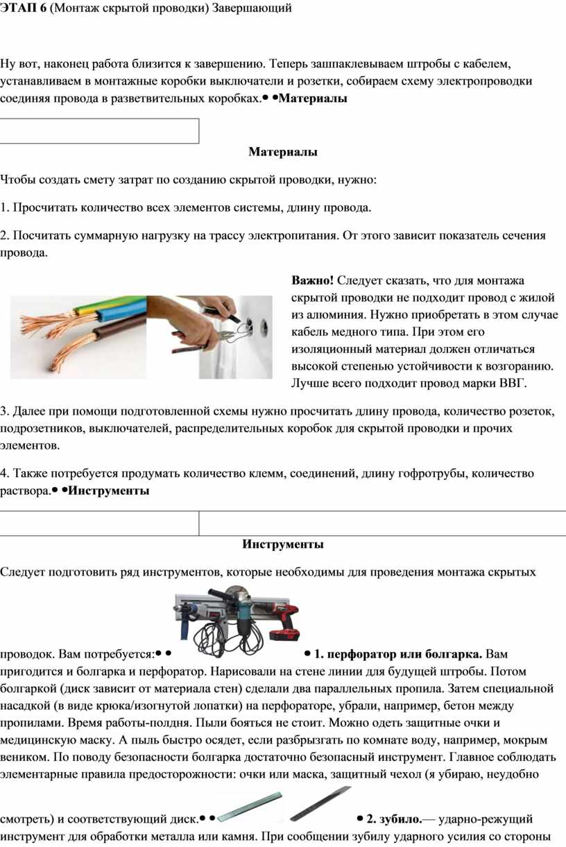 ЭТАП 6 (Монтаж скрытой проводки) Завершающий