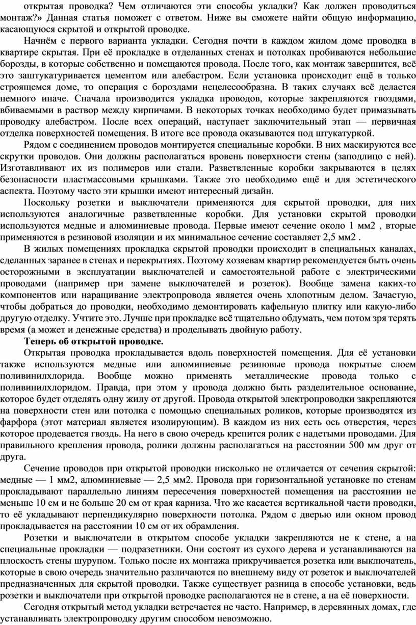 Введение в тему сегодняшнего практического занятия. Презентация «Открытая и скрытая электропроводка» |