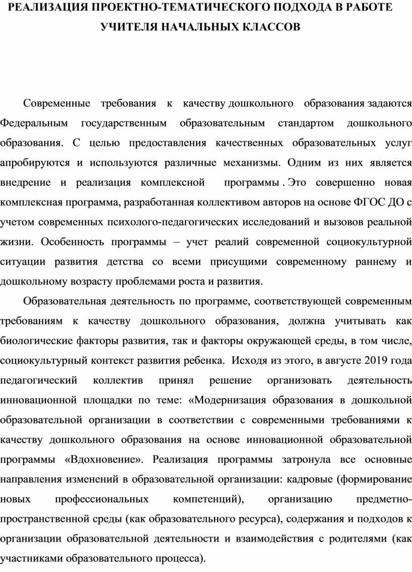 РЕАЛИЗАЦИЯ ПРОЕКТНО-ТЕМАТИЧЕСКОГО ПОДХОДА В РАБОТЕ УЧИТЕЛЯ НАЧАЛЬНЫХ КЛАССОВ