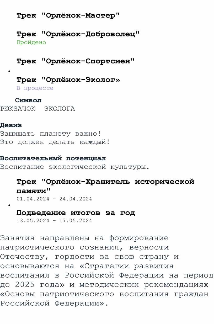 Программа «Орлята России» состоит из 7 образовательных треков, которые класс