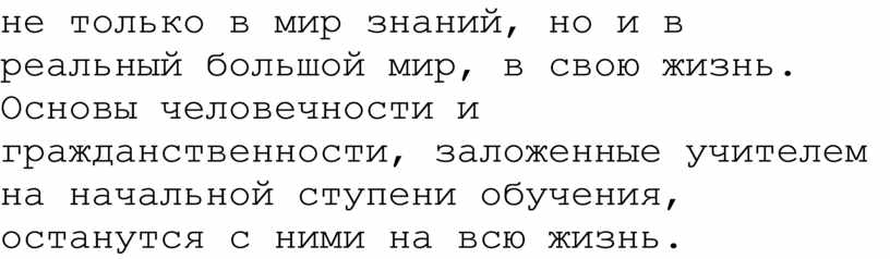 большой мир, в свою жизнь. Основы человечности и гражданственности, заложенные