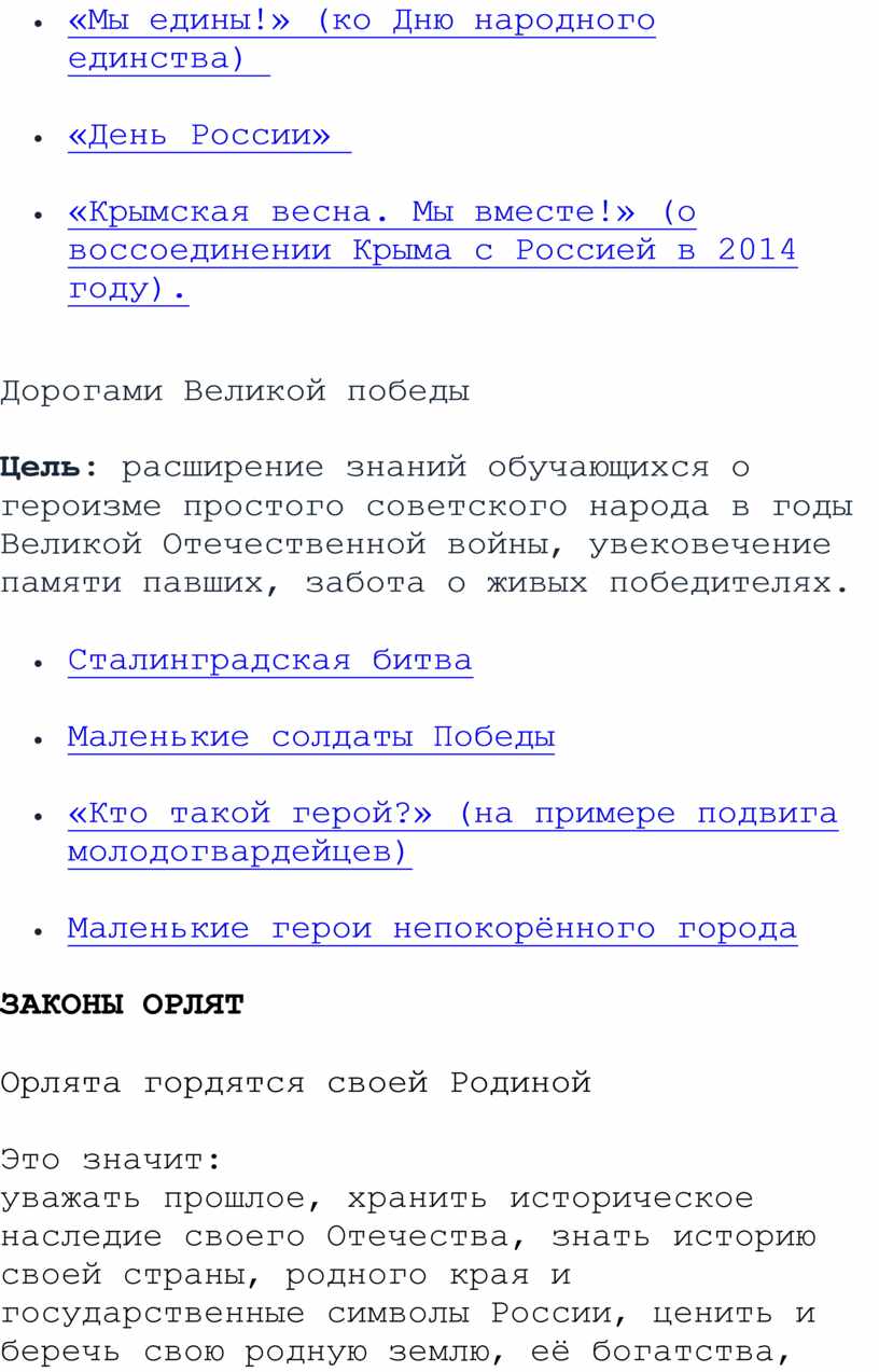 Программа «Орлята России» содержит также цикл занятий, посвященных событиям, праздничным и памятным датам.