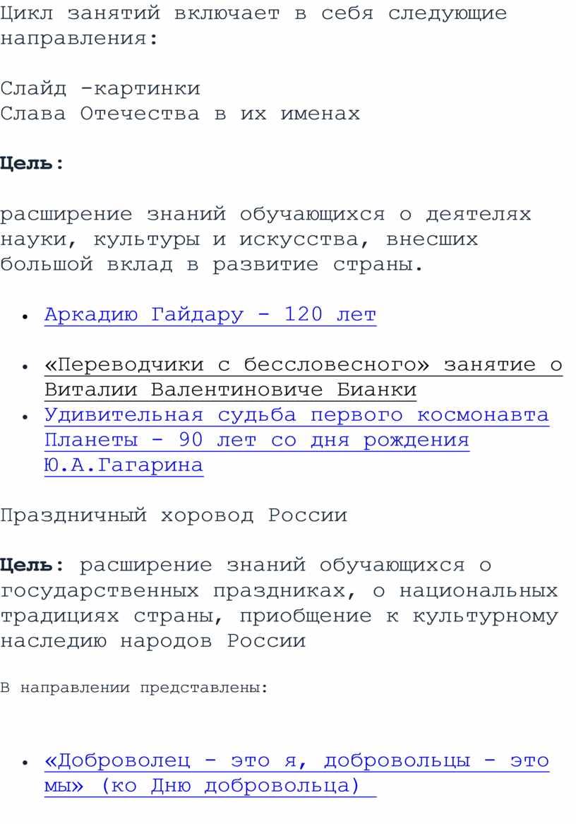 Цель: расширение знаний обучающихся о государственных праздниках, о национальных традициях страны, приобщение к культурному наследию народов России