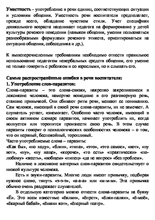 приставки.).Вывод. Воспитатель должен совершенствовать и развивать свою речь,