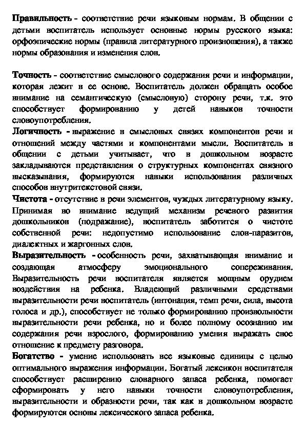 Требования к качеству речи педагога ДОУПравильность соответствие речи языковым нормам. В общении с