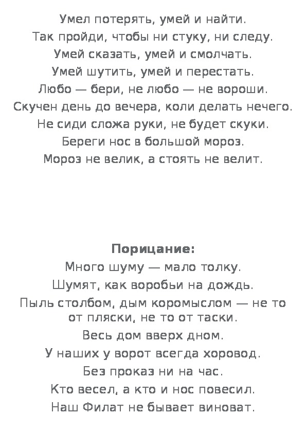 употребление пословиц, поговорок, примеров из жизни и литературы,