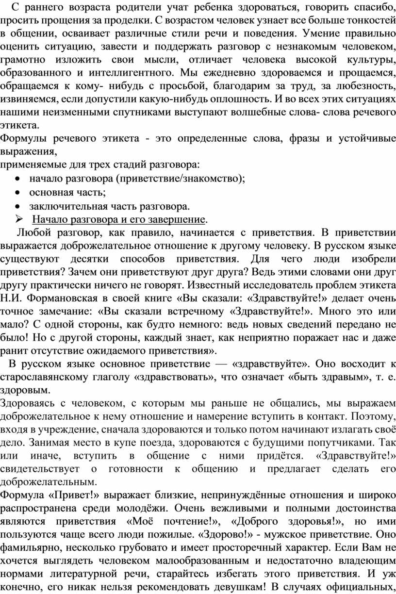 2.2. Формулы речевого этикета………………………………………...5-8 стр.