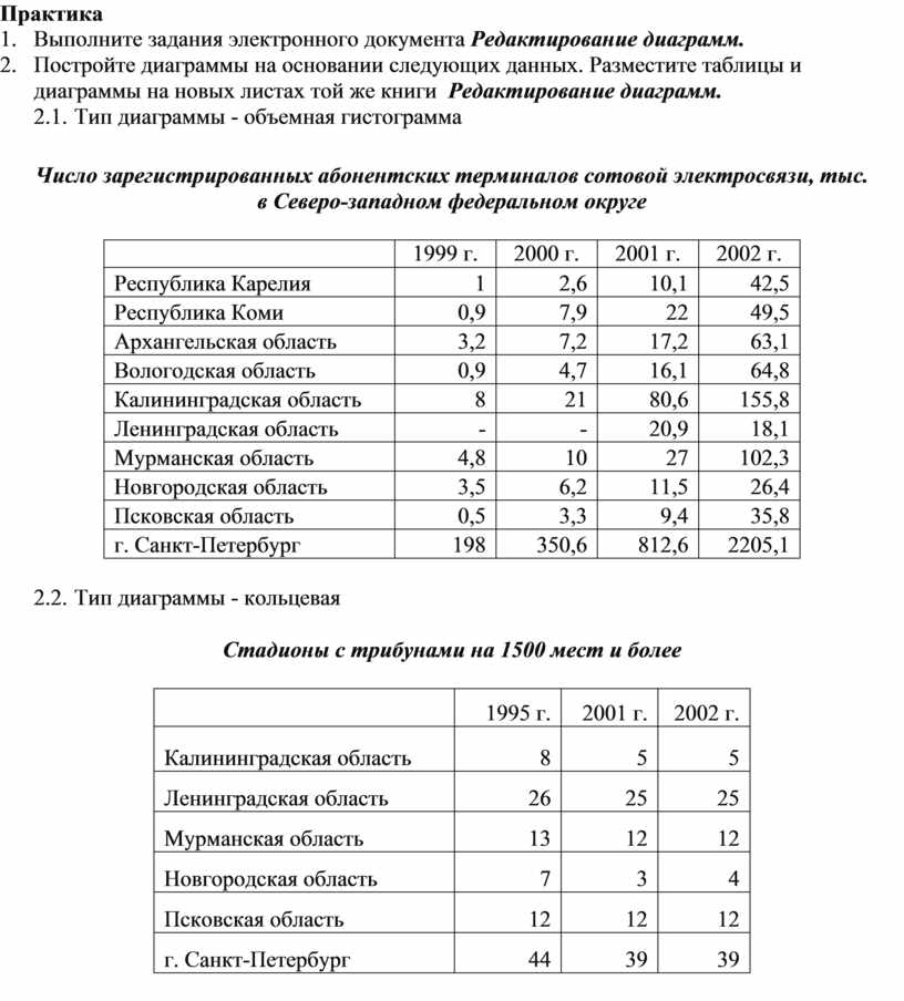 1. Выполните задания электронного документа Редактирование диаграмм.