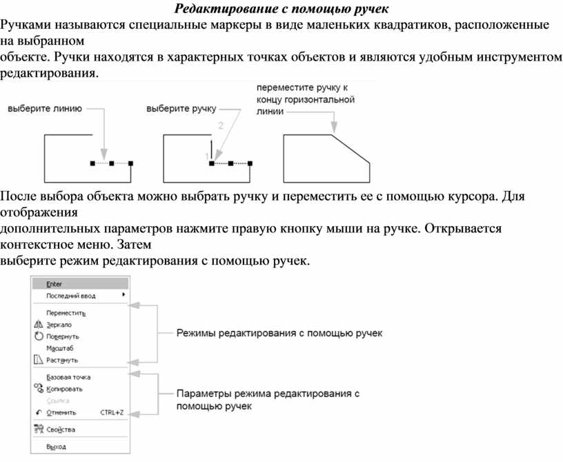 объекте. Ручки находятся в характерных точках объектов и являются удобным инструментом