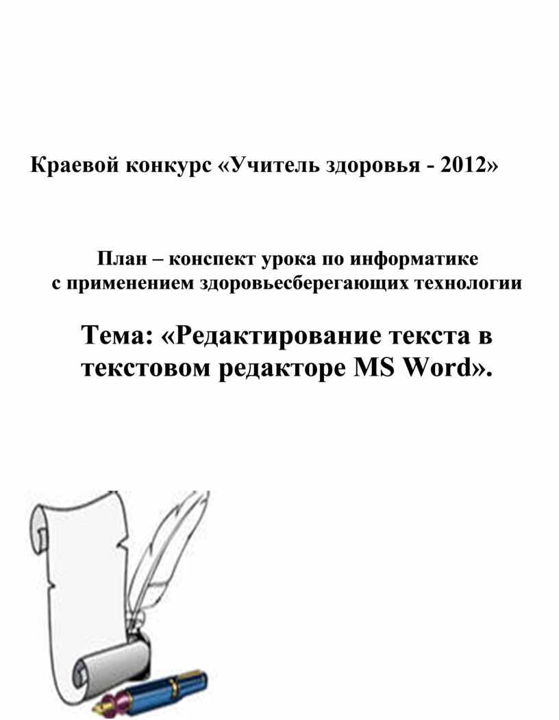 Тема: «Редактирование текста в текстовом редакторе MS Word».