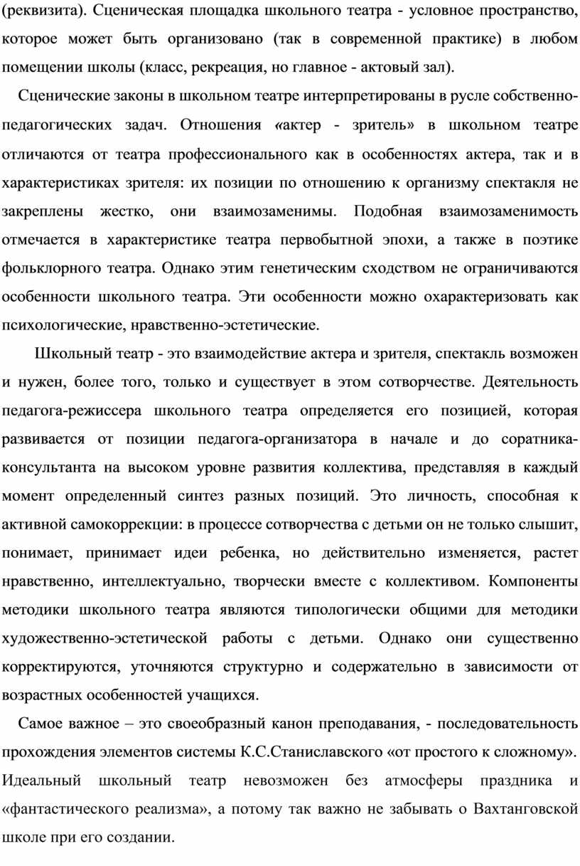 2. Проектирование работы школьного театра, основанного на теории и методике Вахтанговской школы.
