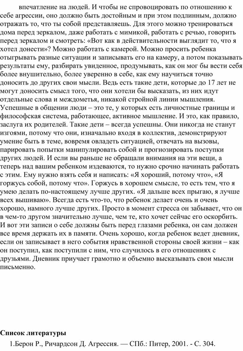 1.Берон Р., Ричардсон Д. Агрессия. — СПб.: Питер, 2001. - С. 304.