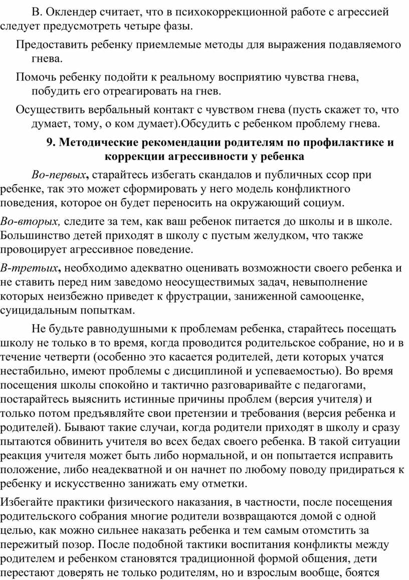 9. Методические рекомендации родителям по профилактике и коррекции агрессивности у ребенка