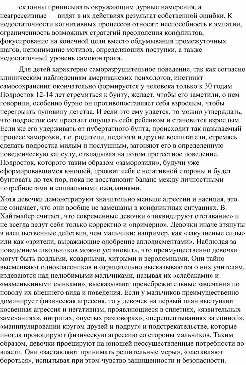 • предшествующий опыт жизнедеятельности школьников, включающий в себя проявления собственной агрессивности и наблюдения аналогичных проявлений в ближайшем окружении - в семье, в референтной (значимой) группе сверстников, в учреждениях образования, посещаемых ранее;
