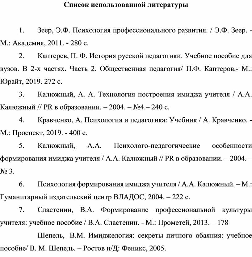 3. Калюжный, А. А. Технология построения имиджа учителя / А.А. Калюжный // PR в образовании. – 2004. – №4.– 240 с.