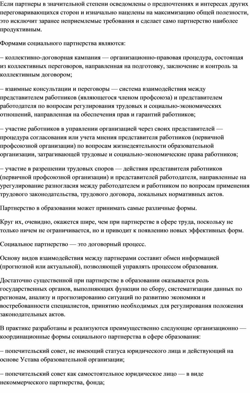 Реферат: «Социальное партнерство – новые аспекты взаимодействия».