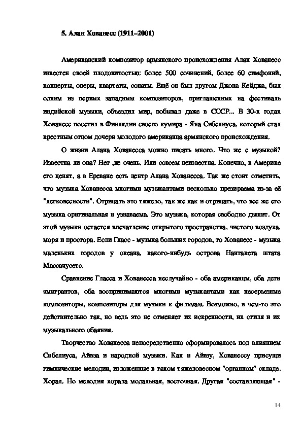 моря и простора. Если Гласс музыка больших городов, то Хованесс музыка
