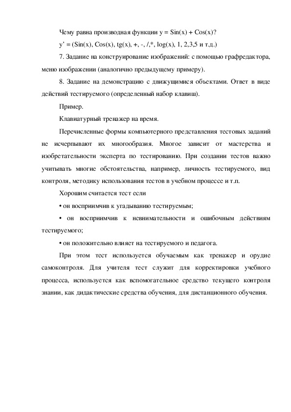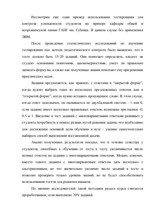 материала.Тесты с успехом можно использовать наряду с другими формами