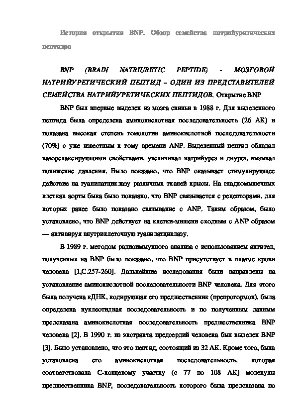 Список литературы........................................................................................26История открытия BNP. Обзор семейства натрийуритических