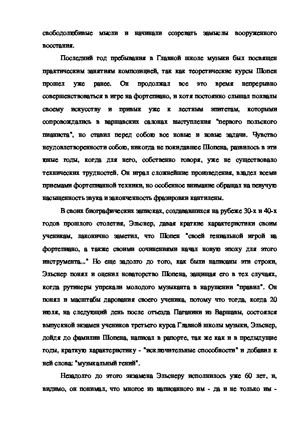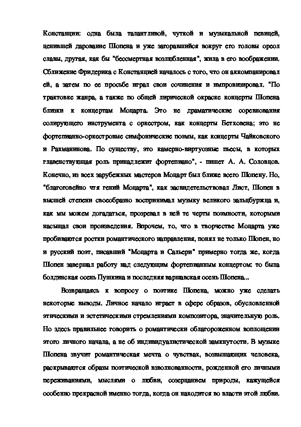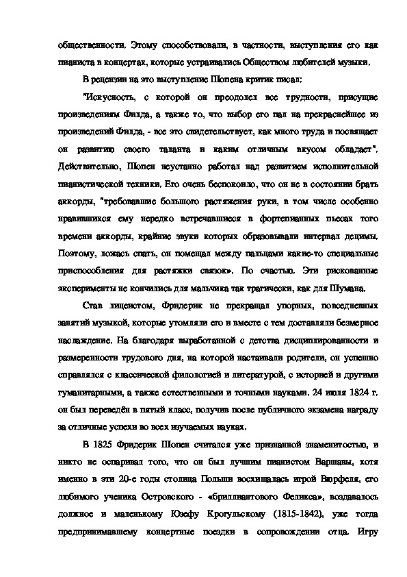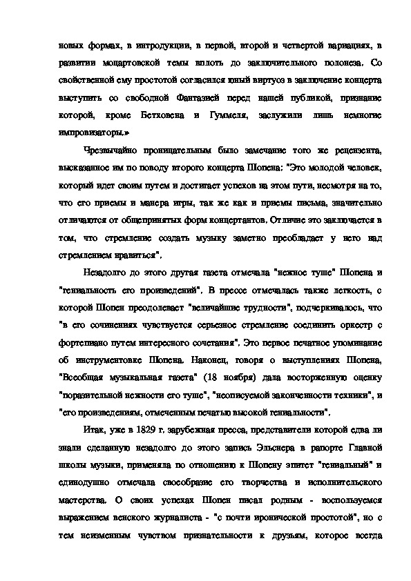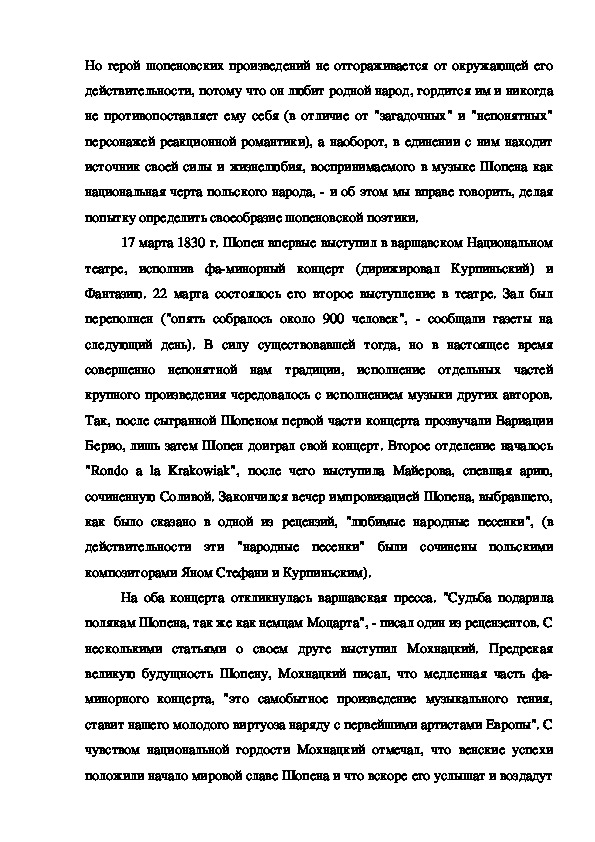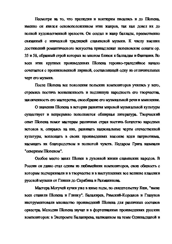 гения, но вместе с тем творчество Шопена явилось закономерным высшим