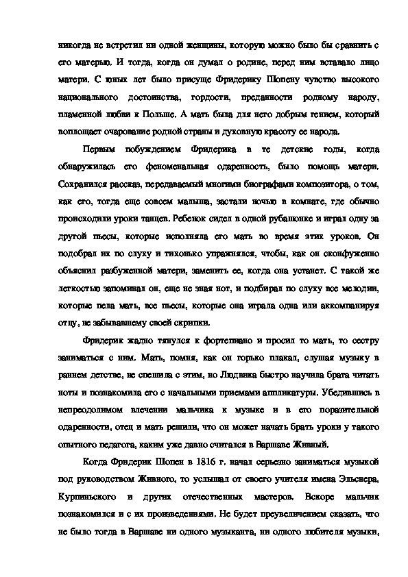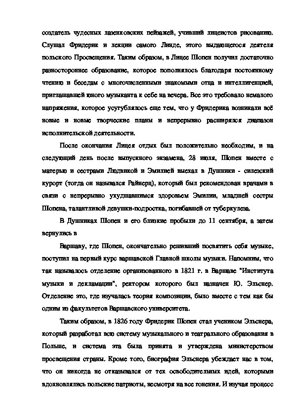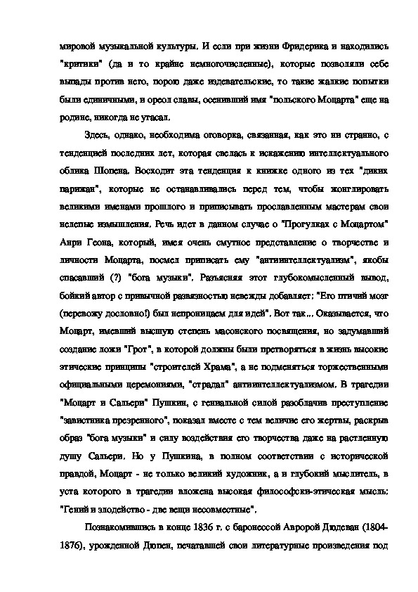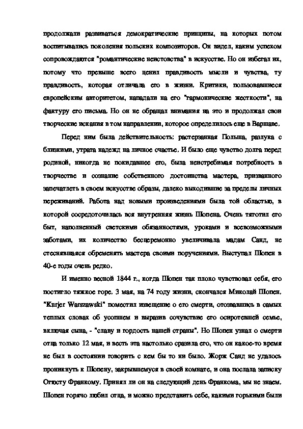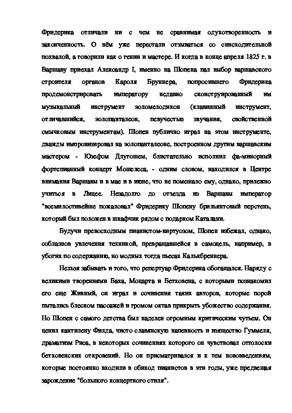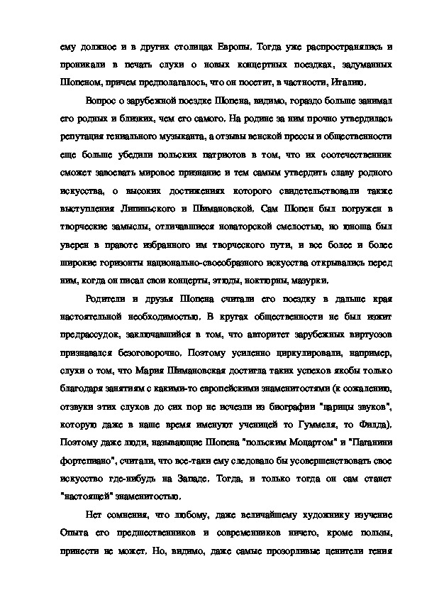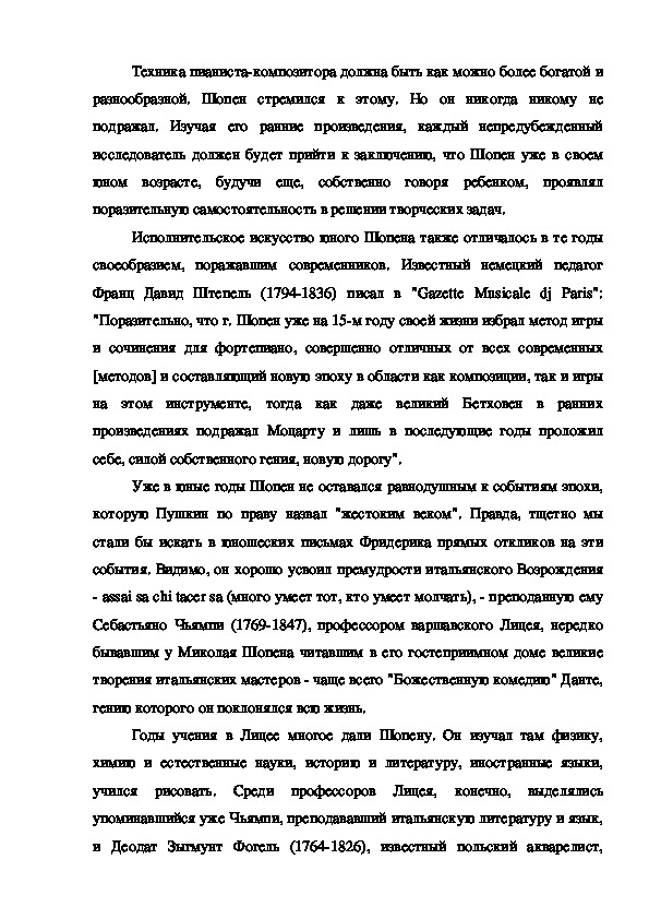 гения, но вместе с тем творчество Шопена явилось закономерным высшим