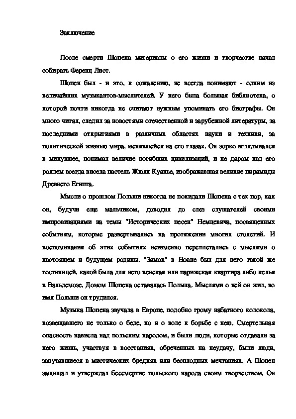 культуры. Значение музыки Шопена определяется не только ее дивной