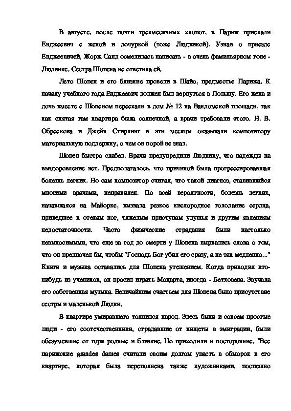 знавшей Шопена его ученицы Джейн Стерлинг, сообщавшей сестре