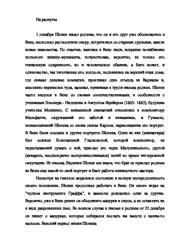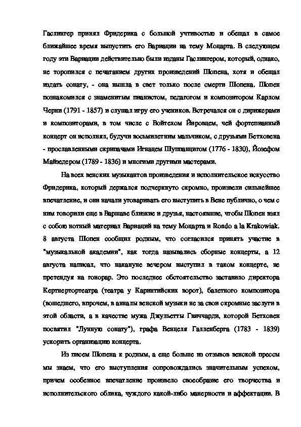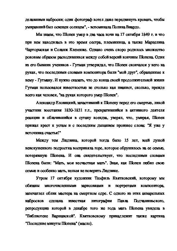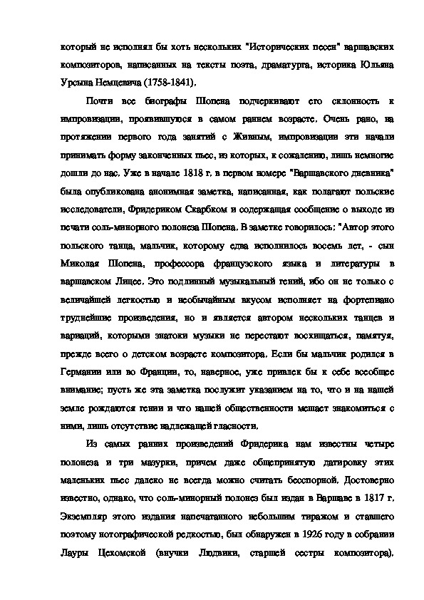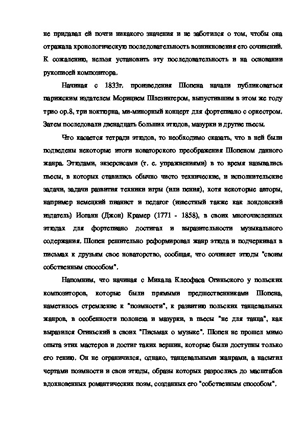 раннего времени. Никто из них не достиг, разумеется, высот шопеновского