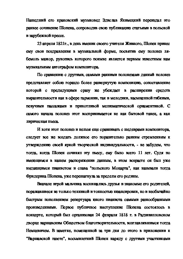 Шопена принадлежит к числу высших достижений мировой музыкальной