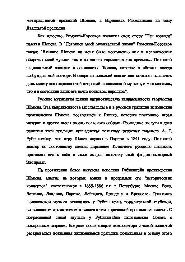 памяти Шопена. В "Летописи моей музыкальной жизни" РимскийКорсаков