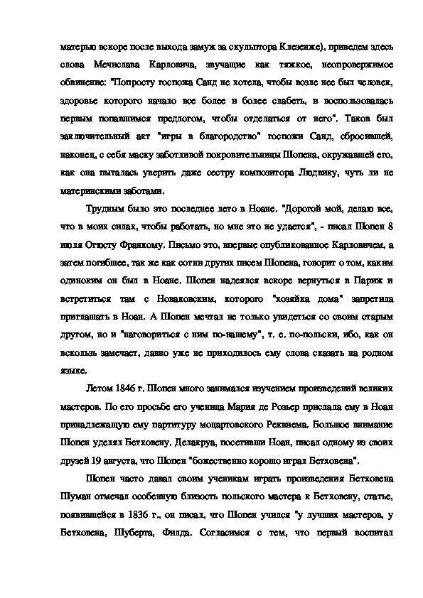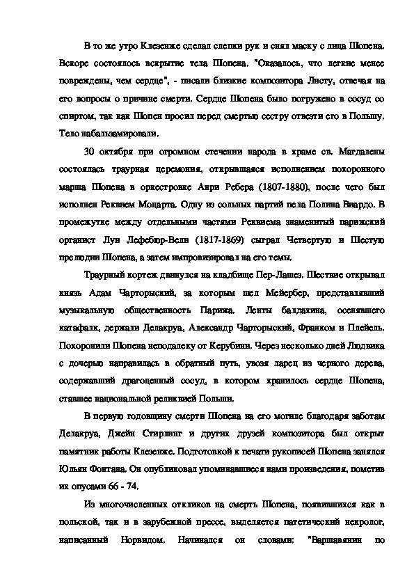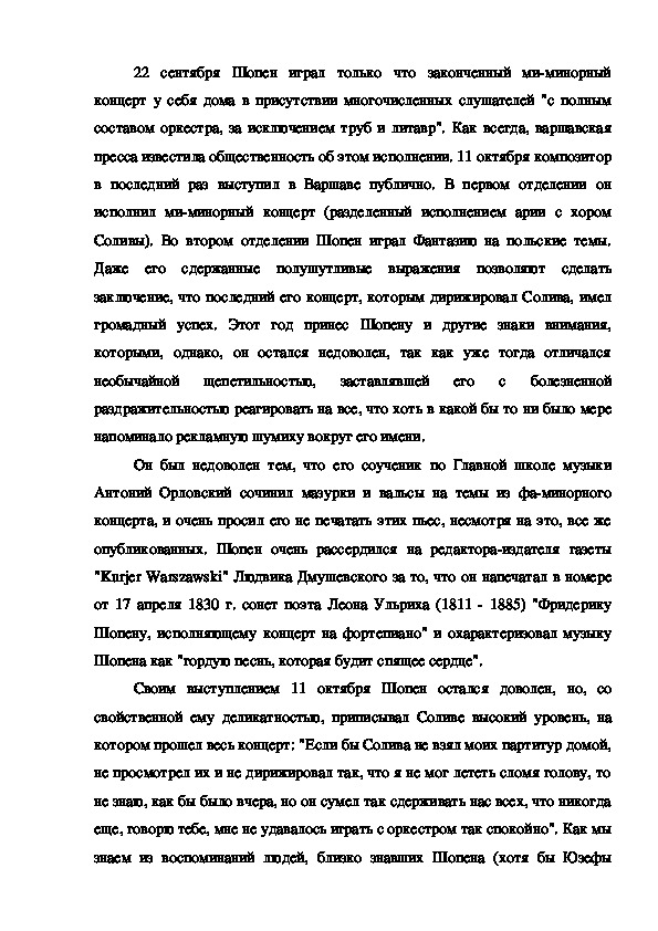 оркестра. Мелодии Шопена звучат и в фортепианных произведениях русских